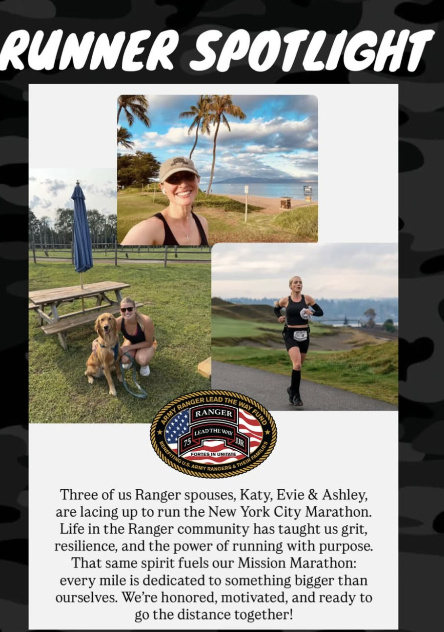 For the first time ever, three Ranger wives are running the New York City Marathon for Team Army Ranger💪. Their participation is not just to support their husbands, but to represent and honor the entire Ranger community. Their strength and dedication embody the spirit of resilience and unity that defines the Rangers. #TeamArmyRanger #NYCMarathon #RangerWives #ArmyStrong #RangerPride #MarathonForACause #RunForRangers #MilitaryFamilies #SupportOurTroops #ArmyLife #RangerStrong #WomenWhoRun #Endurance #MilitarySpouses #RunWithPurpose #NeverQuit #StrengthInUnity #HonorAndSacrifice #MarathonTraining #RunForHeroes #ArmyFamily #CourageUnderFire #Inspiration #FitnessGoals